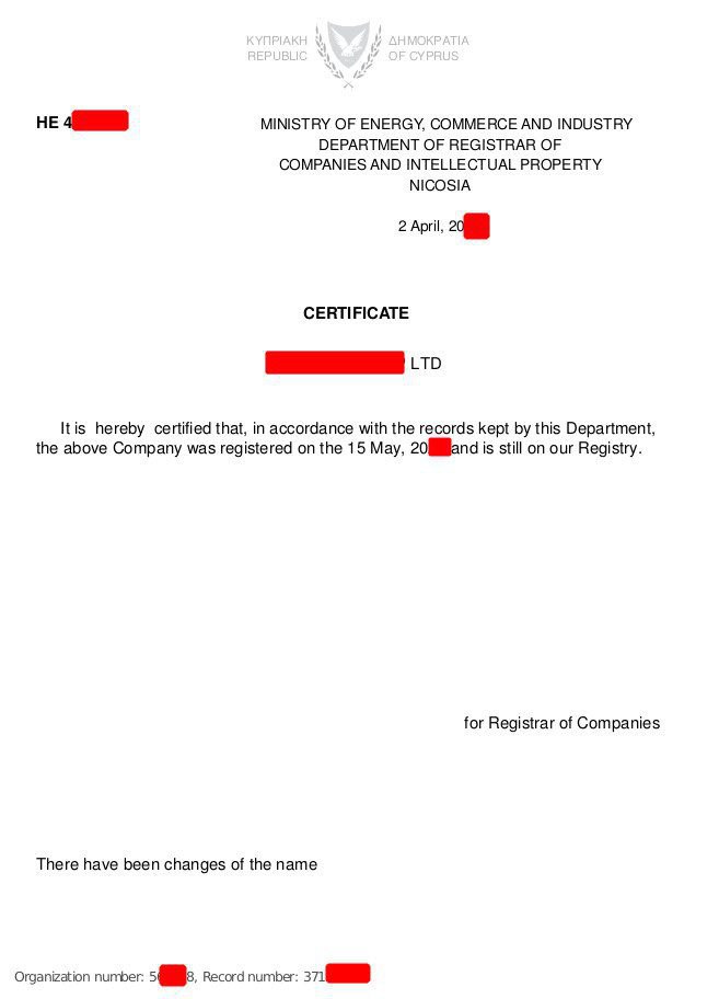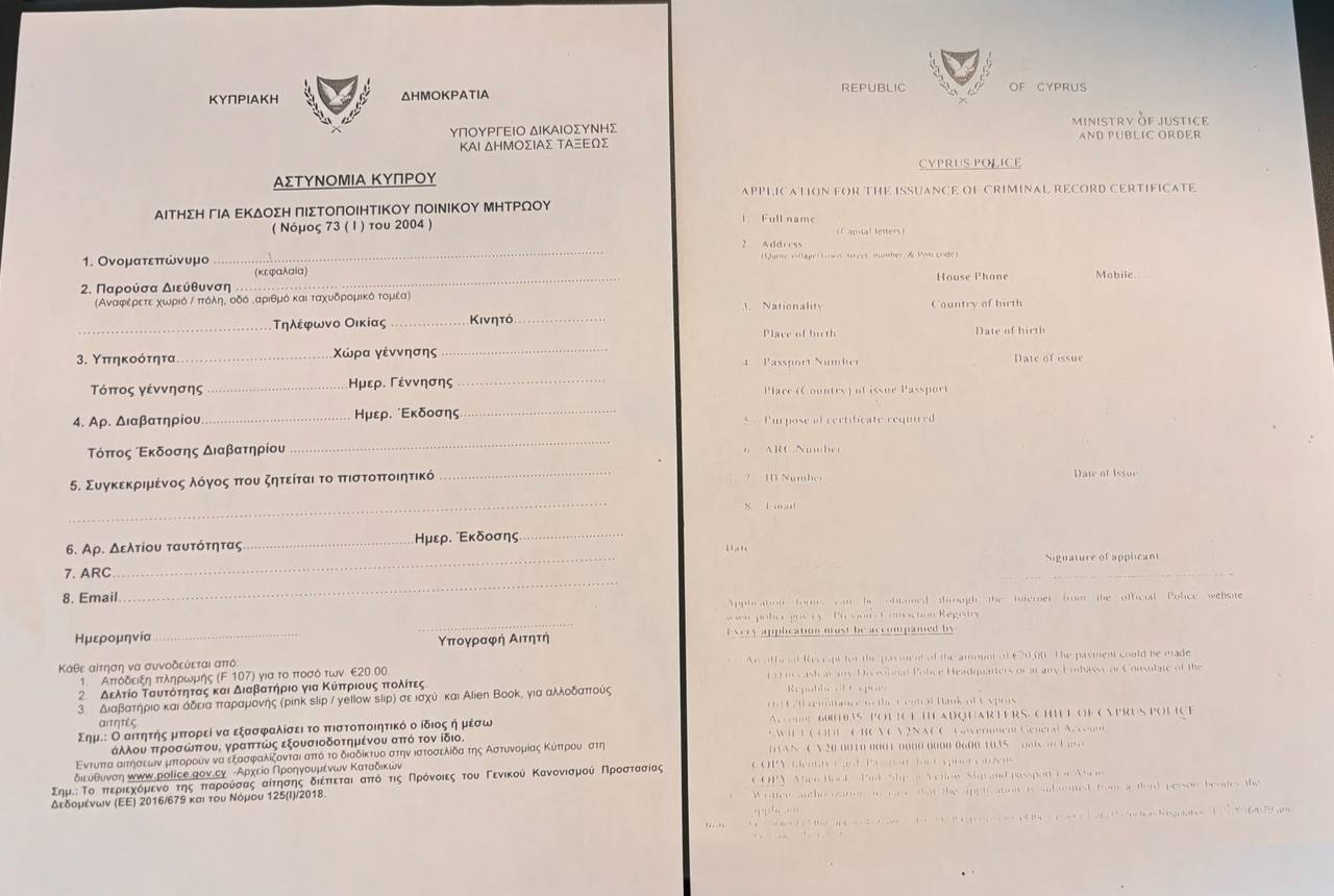 Proof of address (Utility Bill on your name up to 6 months e.g. Electricity bill, Waterboard bill or Official document issued by Cyprus Authorities which verify