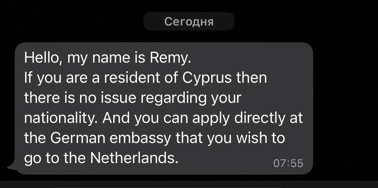 Your appointment is for Limassol on the 24/08/2022 at 12:30. You will need to be here at least 60 minutes before your appointment to get the approval for your application from an examiner.