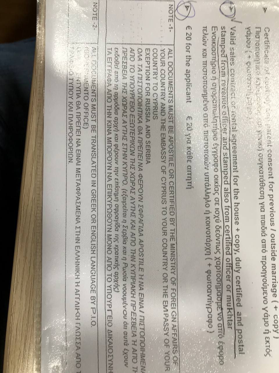 5. A translation of the driving licence is needed, unless the driving licence is in English or in Greek. Translations are valid only if are done through Press and Information Office or by the ambassador of the issuing country (original and a copy)